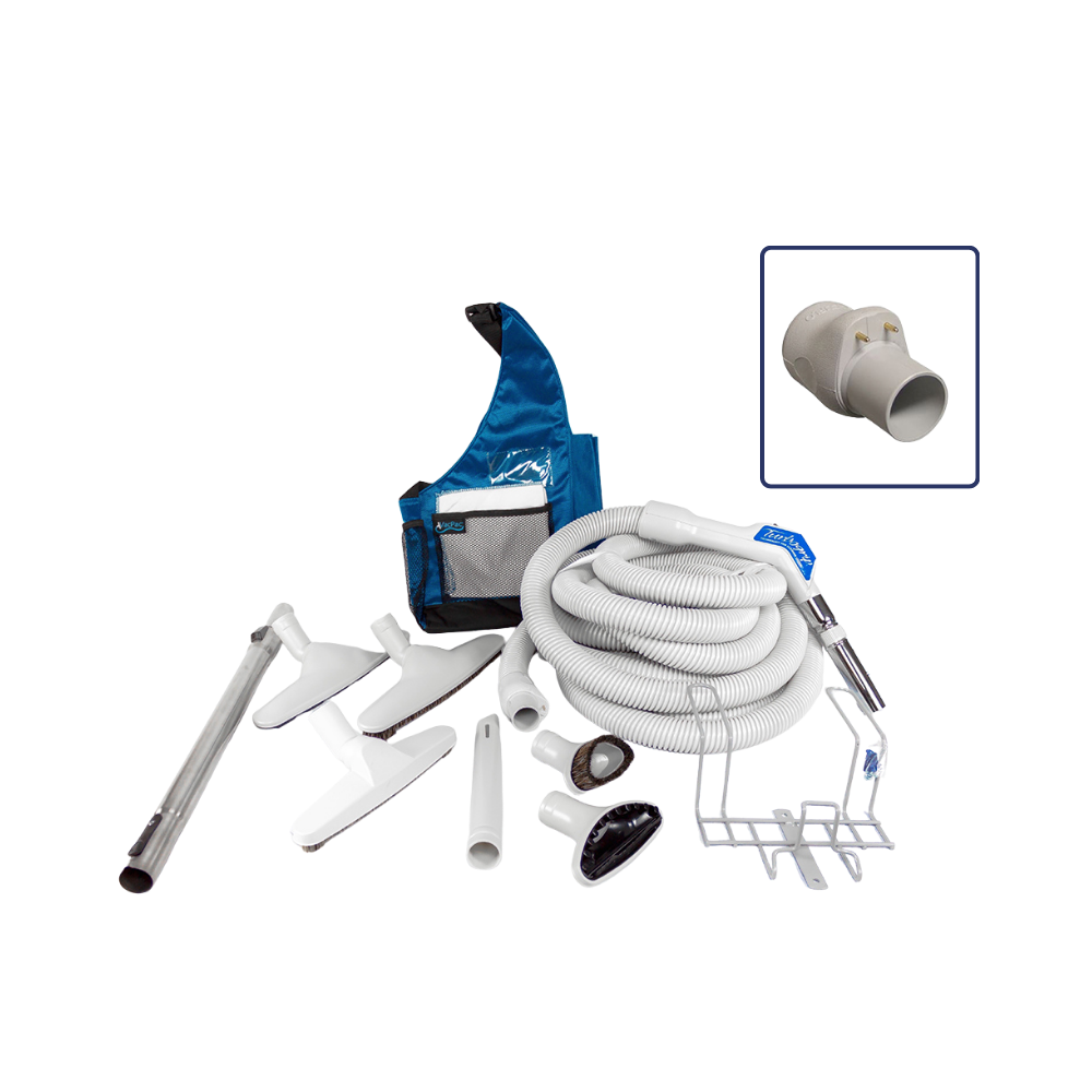 - 30 foot Hose with a low-voltage on/off control switch (features a comfort grip style handle, 360 degree swivel feature for ease of use, button lock connection for wands, and an air relief valve for suction control