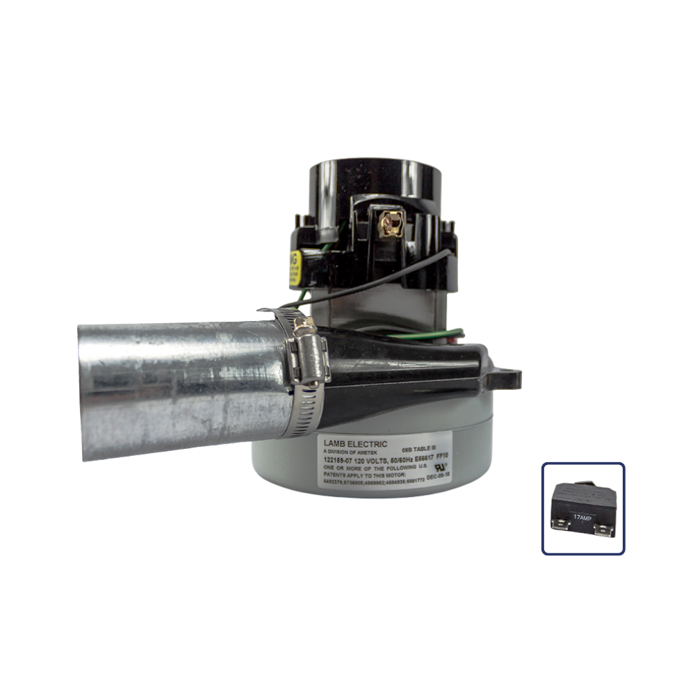 • 1 NEW Vacuflo Ametek Lamb Replacement Motor 122159-07 (the -07 is included because this motor has had its fan blades changed to make it less likely for dirt to get caught within them)